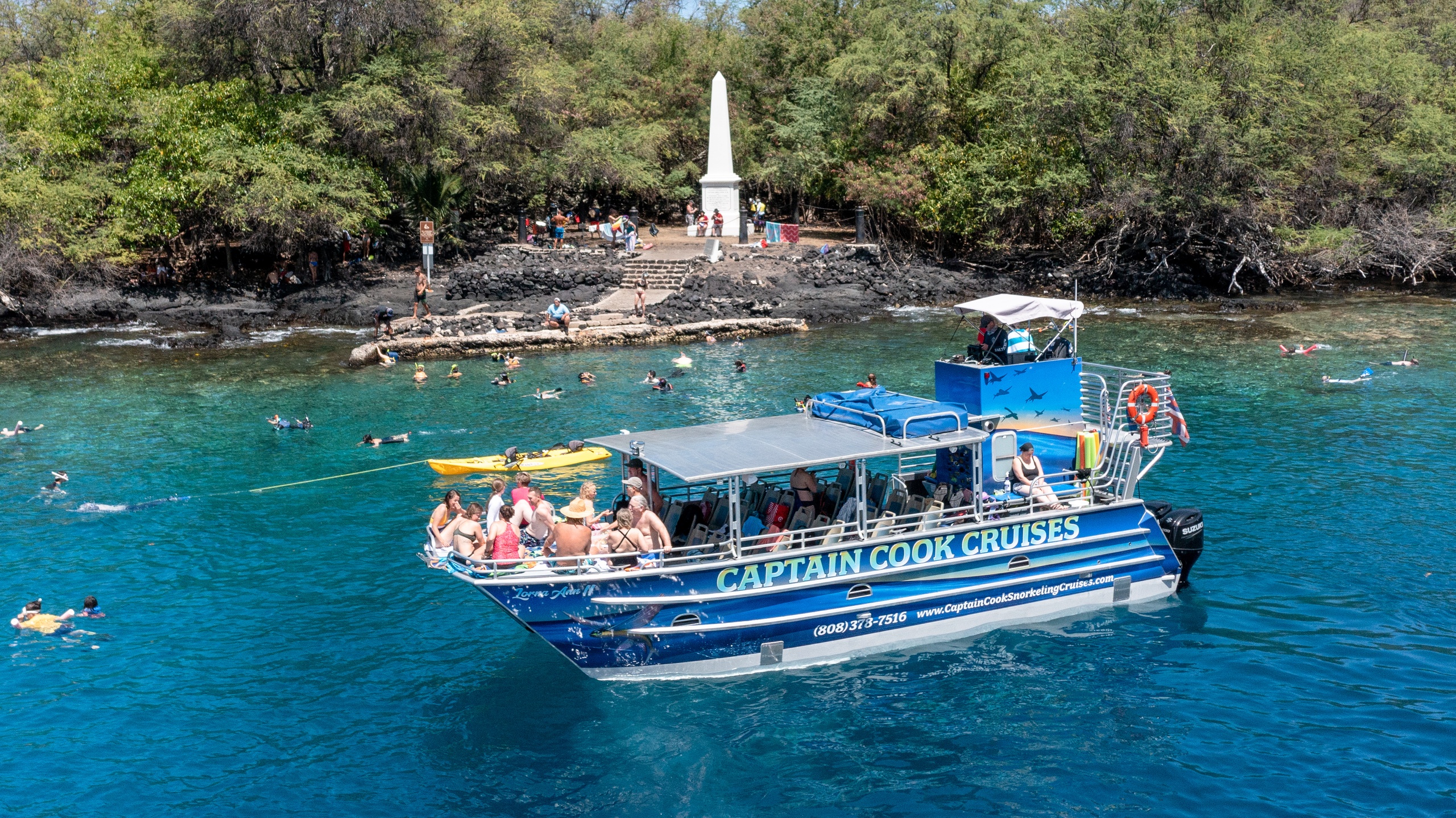 Embark on an unforgettable ocean adventure with our Captain Cook Snorkeling Cruise! Departing from Honokohau Harbor, this 3.5-hour journey explores the stunning Kealakekua Bay and Captain Cook Monument, showcasing vibrant coral gardens and sea caves along the rugged Kona coastline.