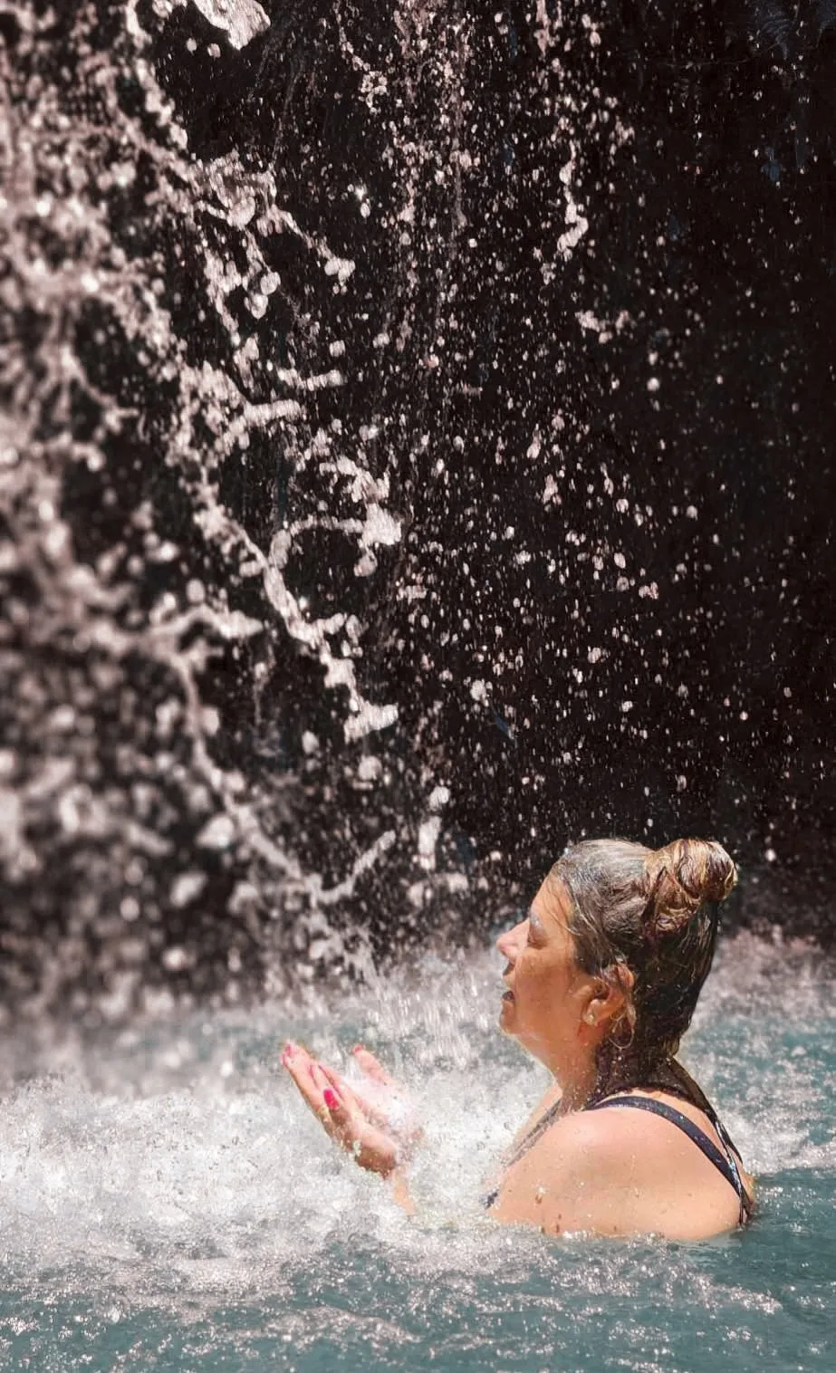 A staircase leads back out of the gorge, and your group stays at the falls as long as possible within the allotted time. The tour includes a stimulating walk with your guides, photos of your adventure, and seasonal fruit from nearby trees.