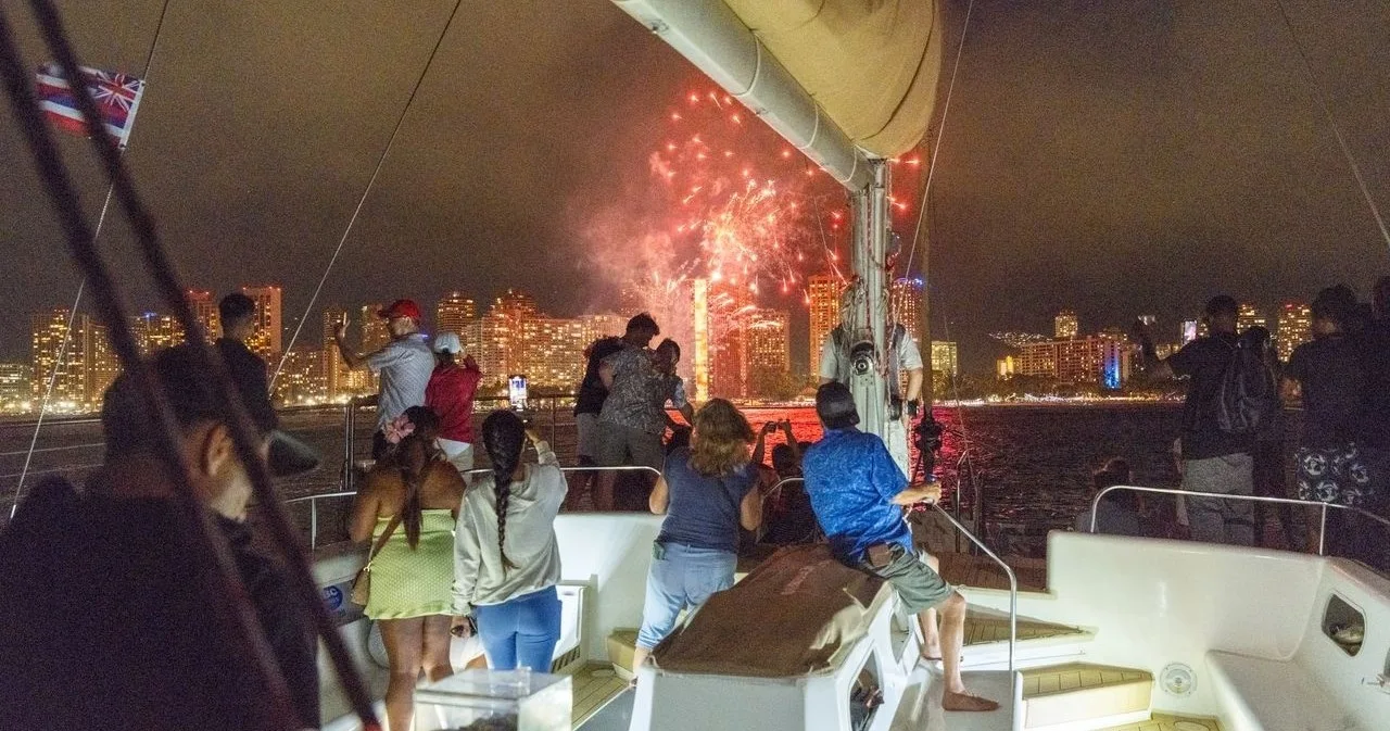 Fireworks Sail Private offers a unique nighttime sail to watch Honolulu’s Friday fireworks from the water. Beverages are available for purchase onboard.