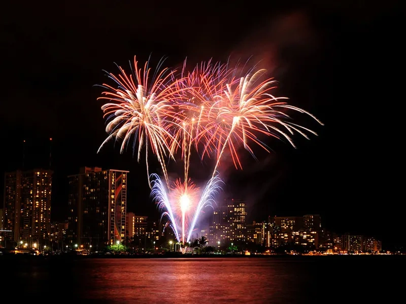 Friday Sunset Dinner and Fireworks Cruise in Honolulu offers a luxury 3-course meal and marine life viewing. Departs Fridays at 5:30PM for up to 12 guests.
