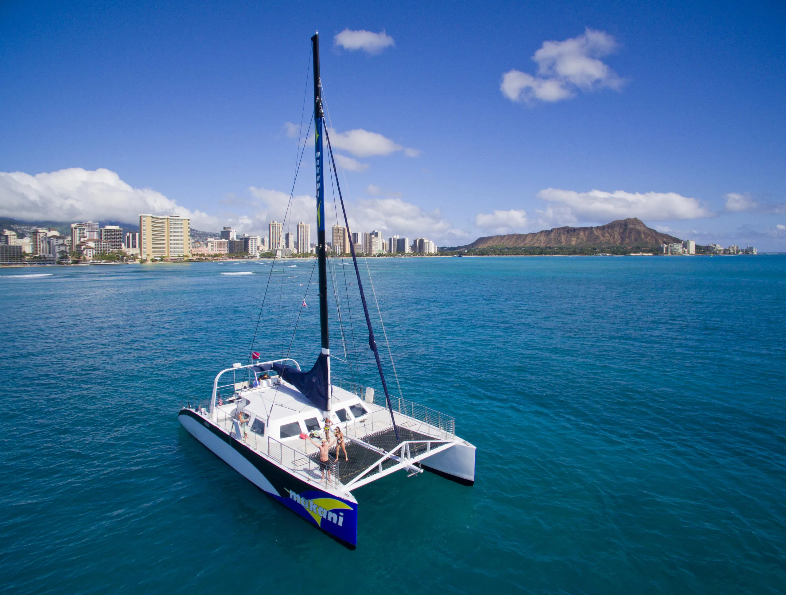 Embark on a captivating two-hour journey aboard a sleek 65-foot catamaran along Oahu’s picturesque south shore. Take in sweeping views of the Koʻolau Mountains, the Honolulu skyline, Waikiki’s grand hotels, and the iconic Diamond Head.