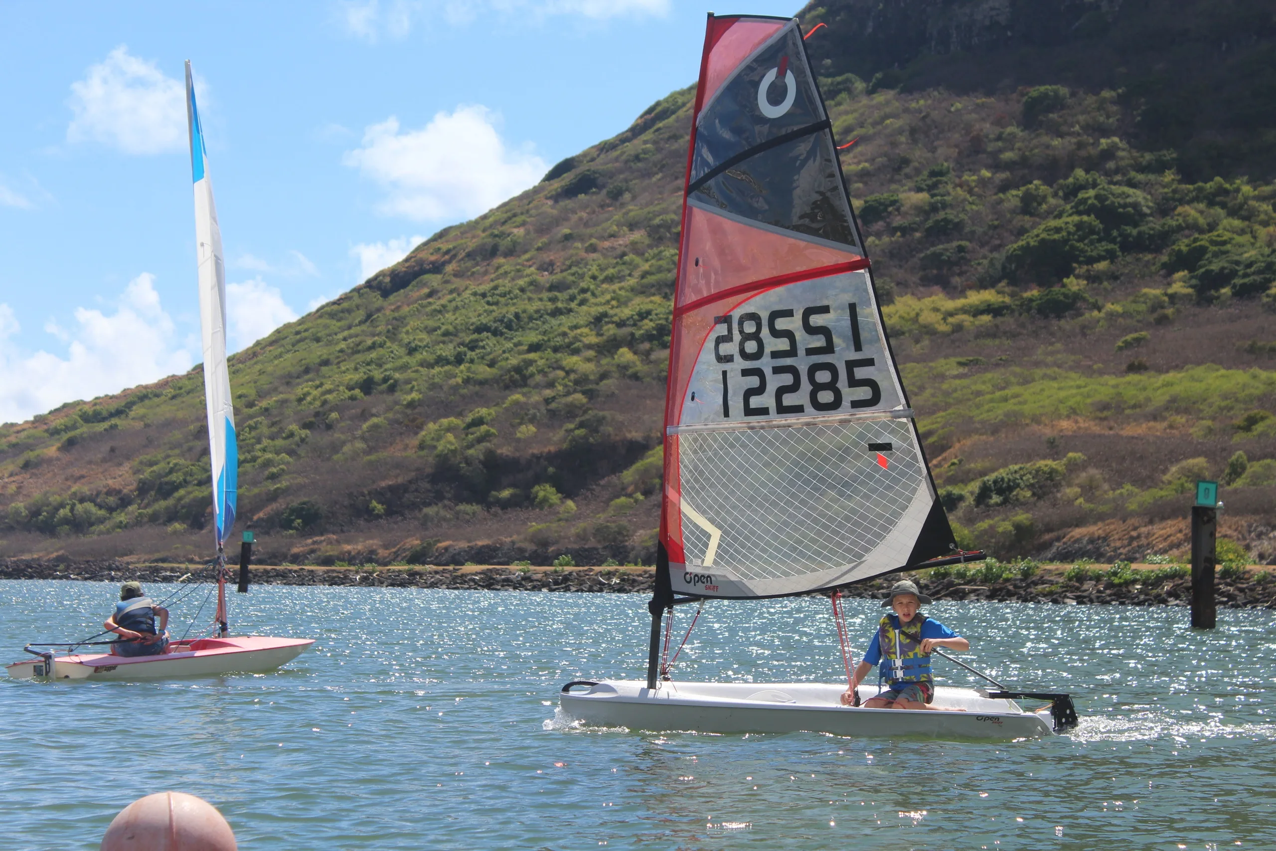 Intermediate 1 After School Sailing Club in Lihue, Hawaii runs Tuesdays 3-6 pm for keiki approved by the director. Drop-in is $35; quarter sessions cost $200 and include life jackets and boats.