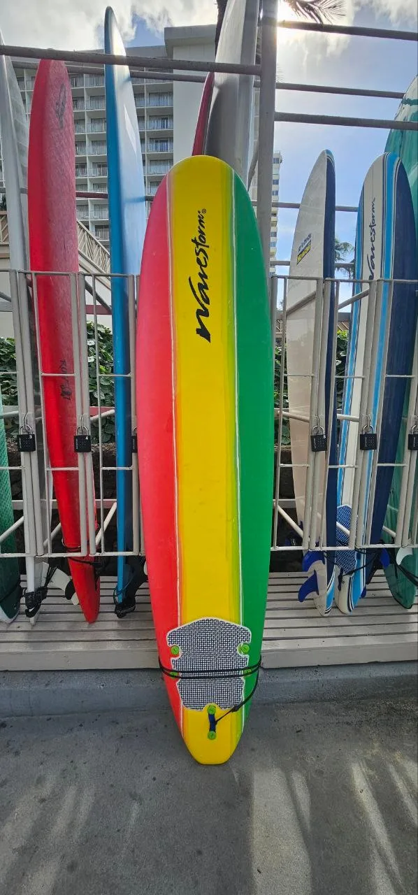 Locker (#8) Surfboard 8ft soft WaveStorm rental offers daily, weekly, and monthly options at Waikiki Circle Hotel. Rentals include in and out locker access from 7:00AM to 5:30PM.
