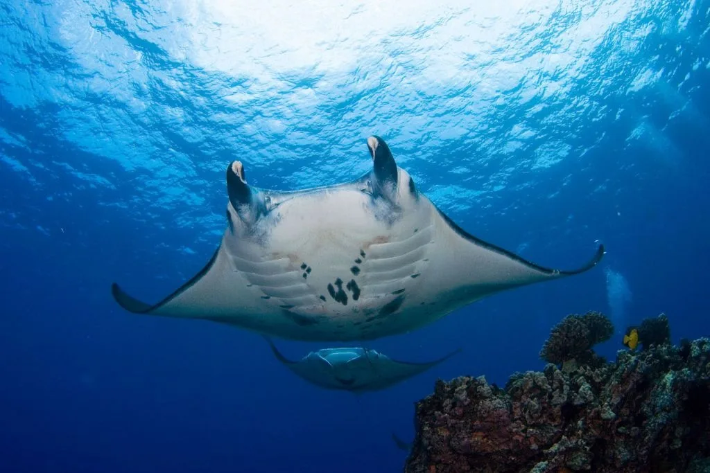 Cruise along the Kona coast in the afternoon and snorkel with the famous manta rays as they somersault and glide in the illuminated waters. Manta rays are filter feeders that feed on plankton attracted to light, providing a unique underwater experience.