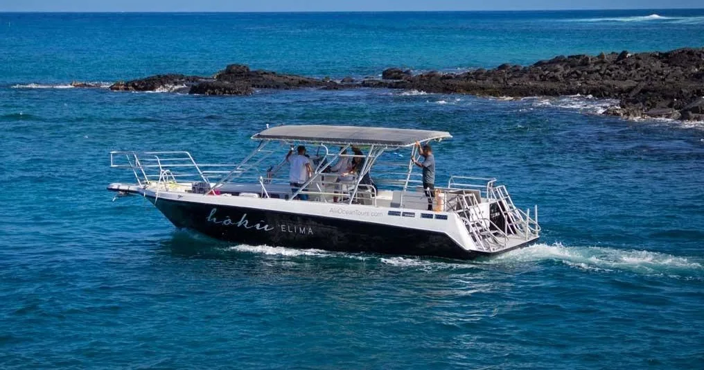 Private Charter (5 Star Package) in Kailua-Kona, offered by Ali’i Ocean Tours. Tour Description: Reserve the Hoku ‘Elima for a 4 hour excursion of your choosing. Pricing starts from $2100.