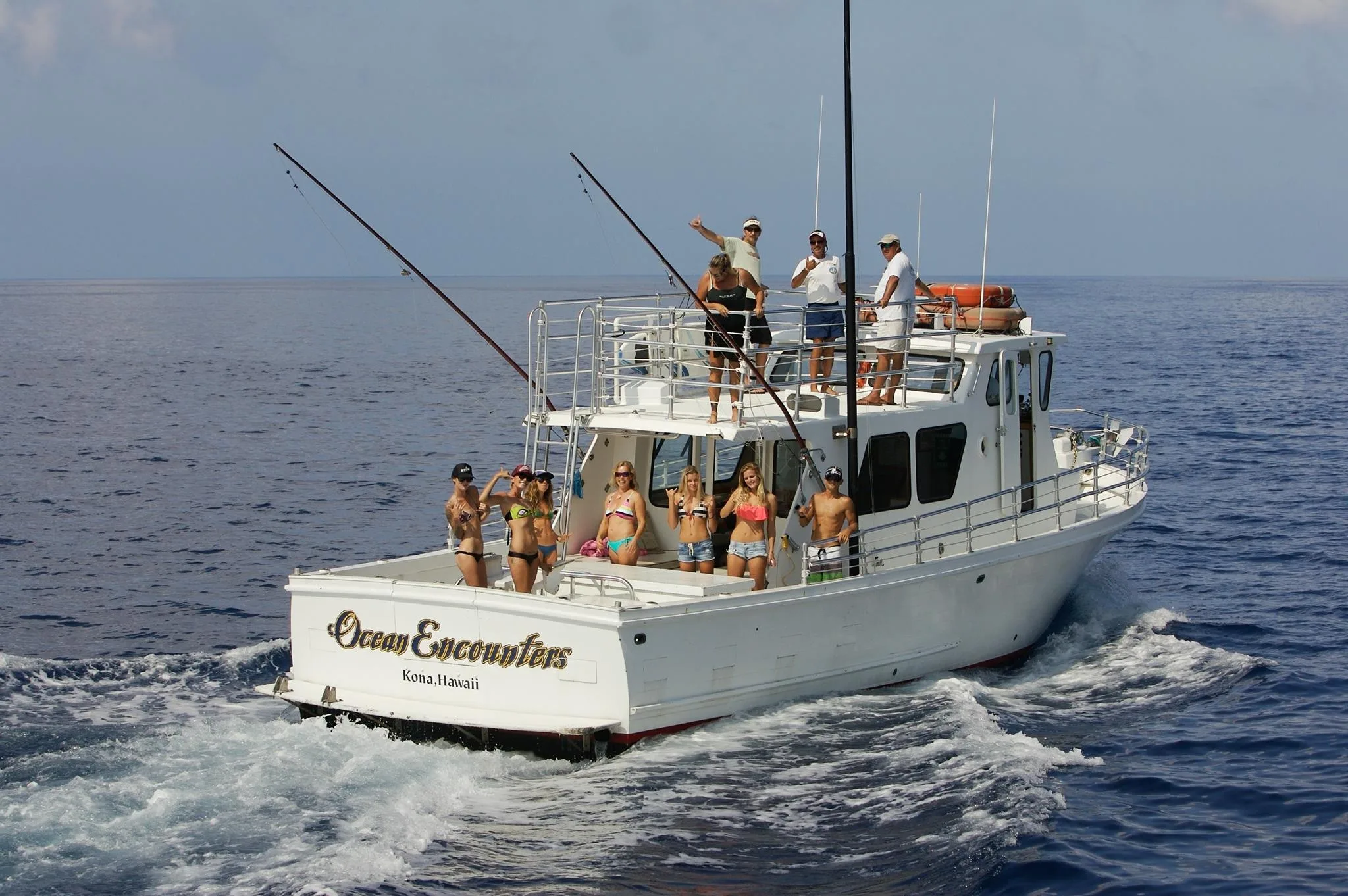 Welcome aboard the 46 ft vessel “Ocean Encounter,” designed for comfort and memorable experiences in the calm, beautiful waters of Kona. This roomy and dry boat features a restroom, plenty of shaded areas, an inside cabin, and upstairs seating for excellent viewing.