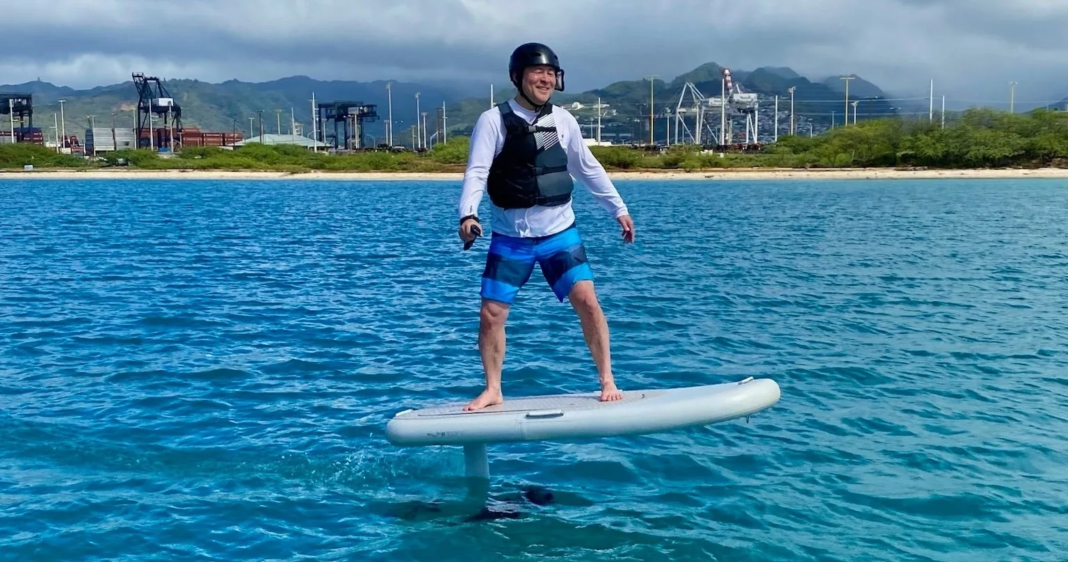 SOLO MID LENGTH eFOIL EXPERIENCE offers up to 4 participants a 1 to 1.5-hour lesson in Honolulu. The session includes ground school and 30 minutes of guaranteed water time.