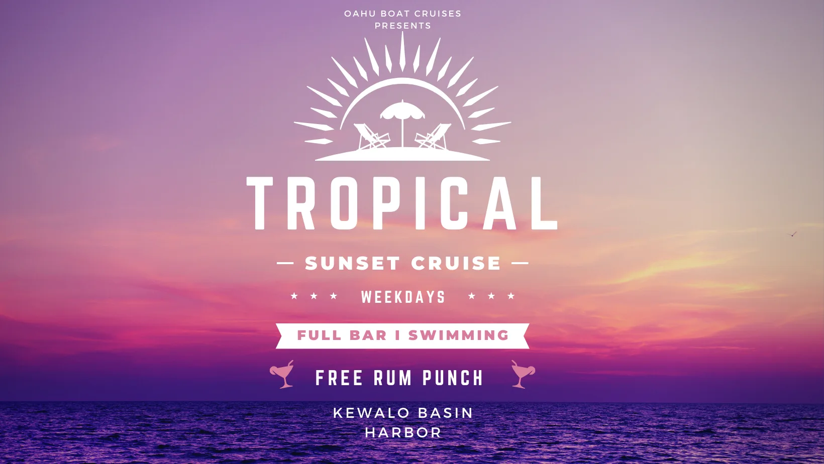 The cruise offers the best views of Waikiki and an unforgettable Hawaiian sunset. During certain months, guests may also spot migrating humpback whales. Check-in begins 30 minutes prior to boarding at 1085 Ala Moana Blvd suite 103, located across from pier F in Honolulu Harbor.