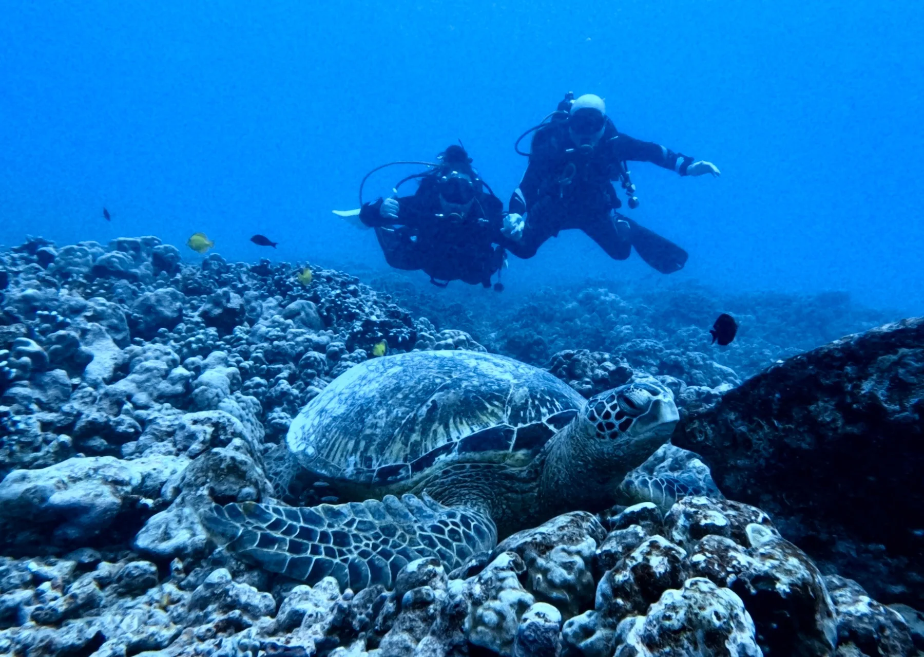 Depart from Kewalo Basin in Honolulu for a two tank dive charter featuring a deep and shallow dive profile. The first dive is typically at wrecks such as Sea Tiger or YO 257, followed by a reef dive at 40-60 feet depth.