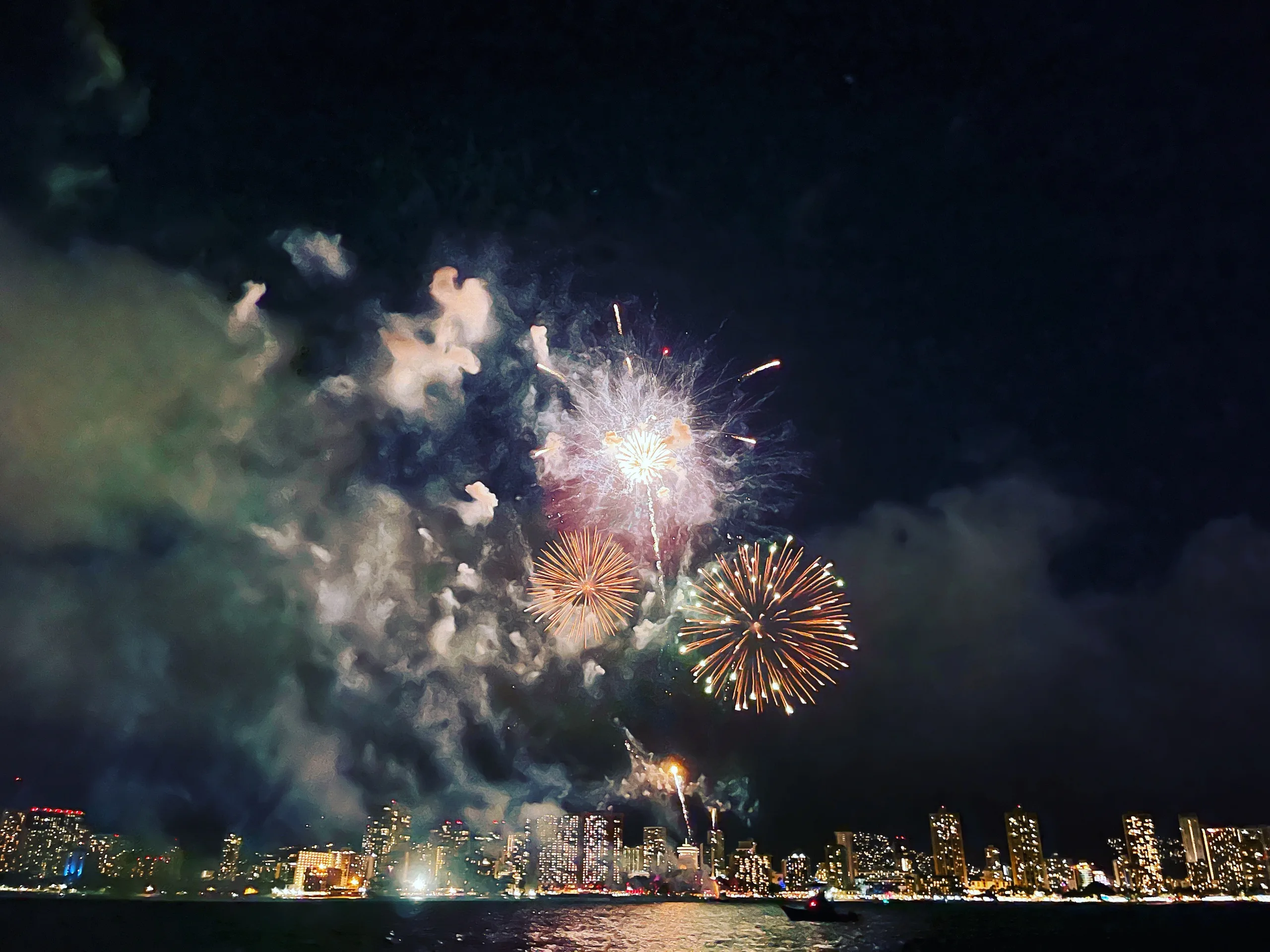 The cruise arrives at the Friday night fireworks location off Waikiki, offering spectacular views of the fireworks display from the water. Guests 21+ may bring their own beverages; ice, ice chests, and cups are provided.